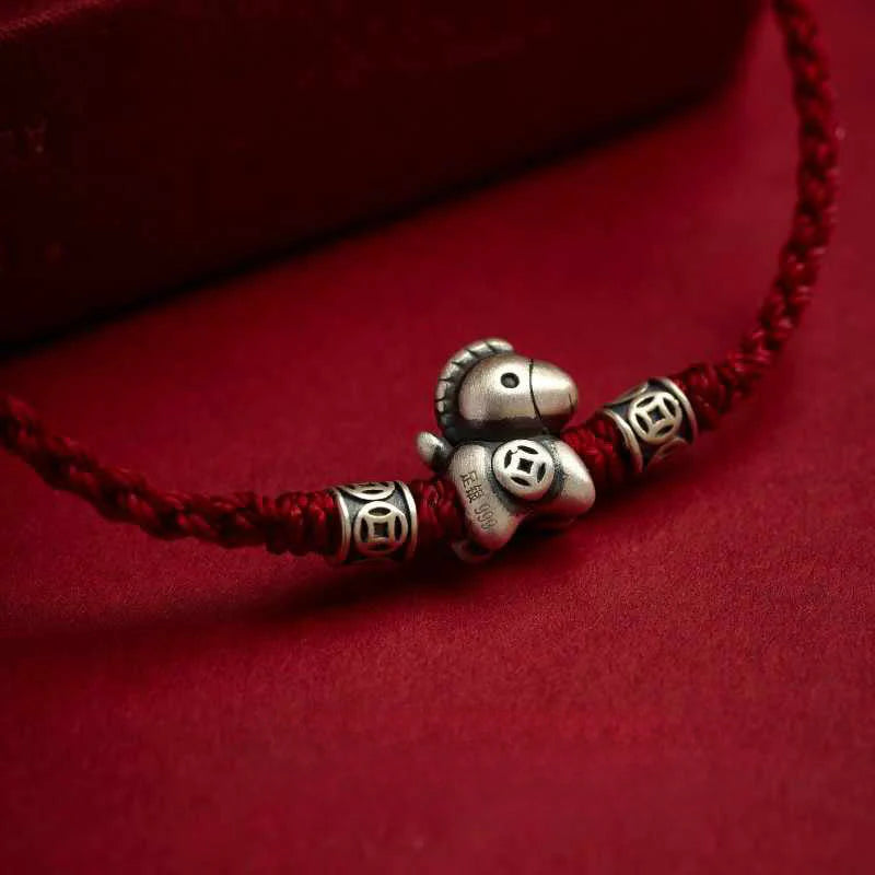 ๐Year of the Horse 999 Sterling Silver String Braided Protection Bracelet